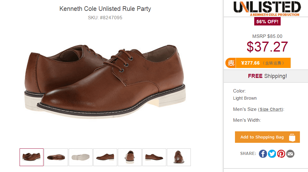 起先是在Amazon挑,后来在SMZDM看到6PM的海淘教程, 发现6PM的皮鞋比Amazon多,而且便宜。