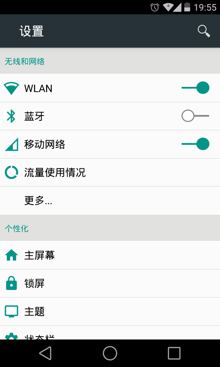 设置界面的配色、开关做得也有模有样,右上角的搜索按键是最新版的CM11添加的。