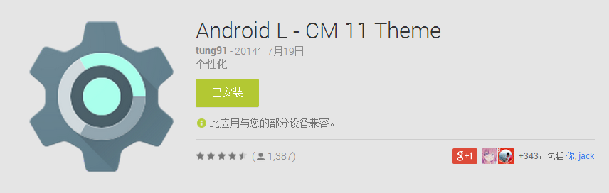 个人正在使用基于 Android 4.4 的第三方ROM CyanogenMod 11,最近在Google Play发现个CM11的Android L 主题,看起来很仿真的样子。