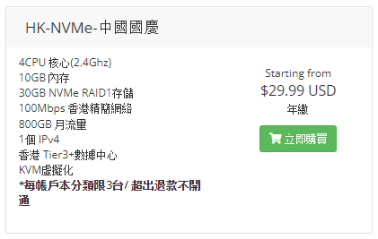 今年国庆,看到 LiCloud.io 有活动,遂购入这台年付 30 美元的香港 VPS。