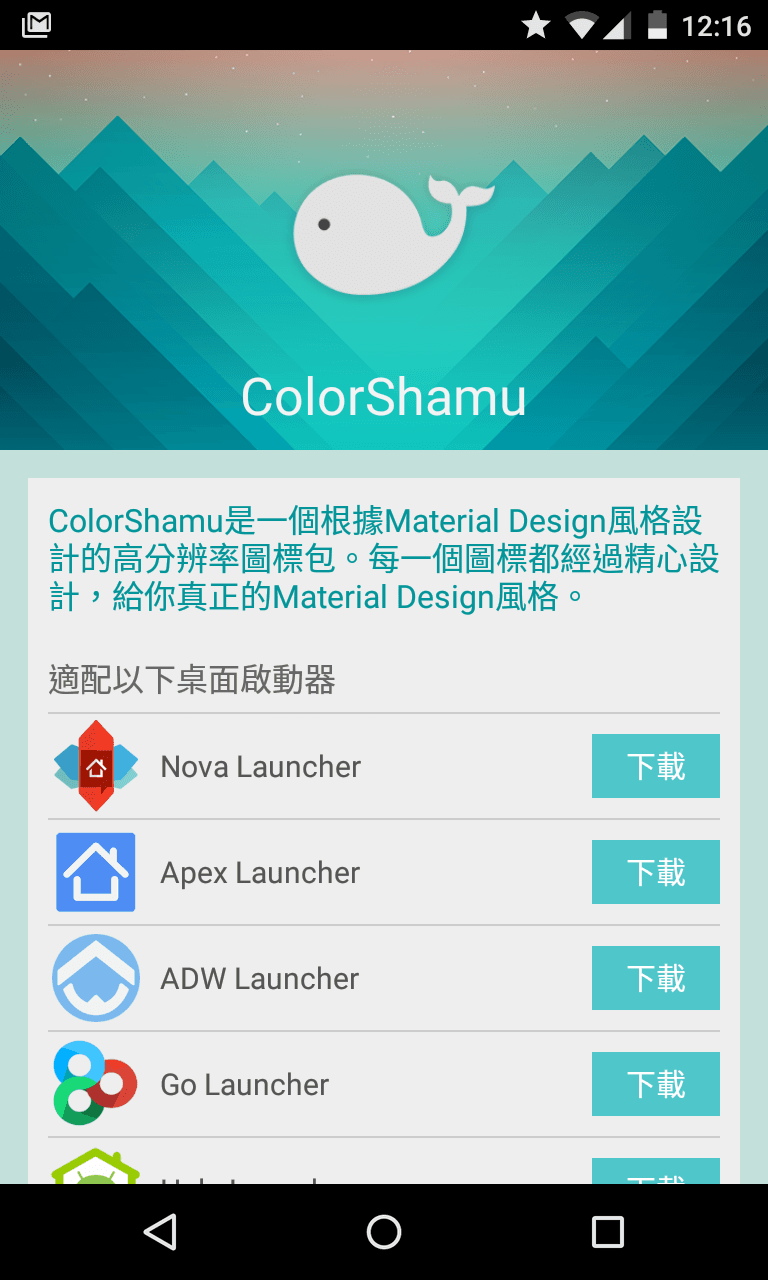 ColorShamu是一個根據Material Design風格設計的高分辨率圖標包。每一個圖標都經過精心設計,帶給你真正的Material Design。