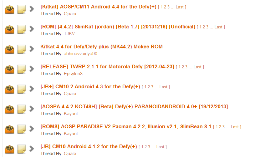 这是XDA论坛的MOTO Defy板块,因为看到有人说MOTO已经放弃为Defy开发Android 4.4的话而来到这里。