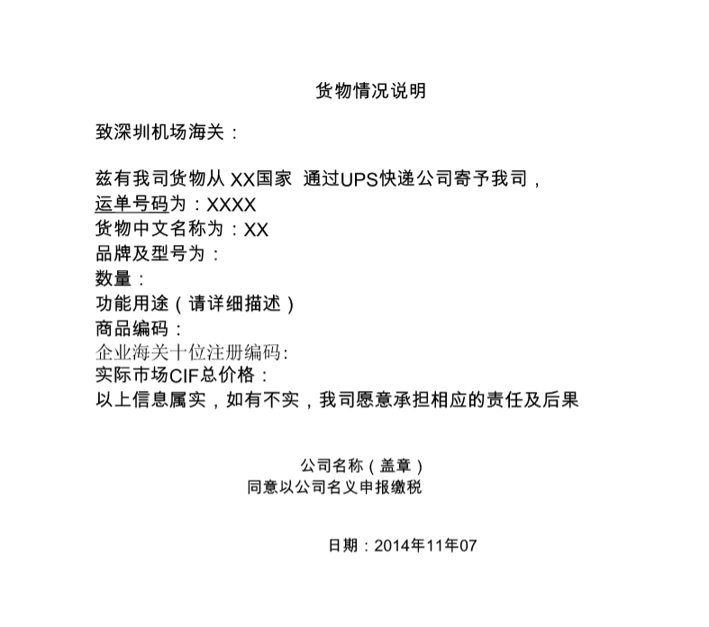 因为要商业报关,所以是需要公司盖章的,填好这说明打印出来随便弄个公司印章盖上去,扫描出来通过邮件发送给 UPS (发邮件那个),我是用手机拍照然后转成 PDF 发过去的。