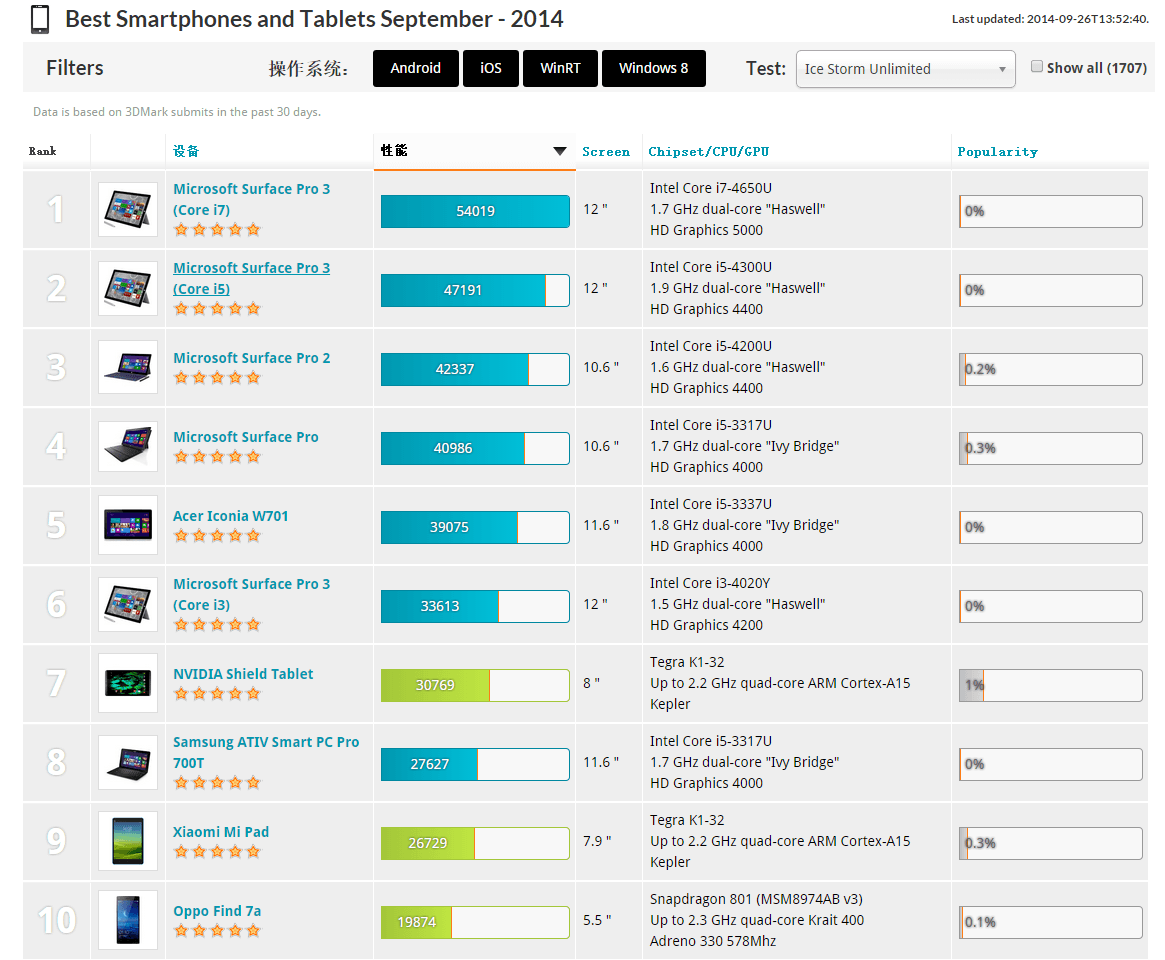 关于Futuremark,Windows上著名的跑分软件PC Mark和3D Mark都是这家出品,现在Futuremark开始推出移动端的跑分软件,而且公布了跑分排行榜。作为测试CPU和GPU性能的老牌软件,应该比安兔兔之流可信很多。