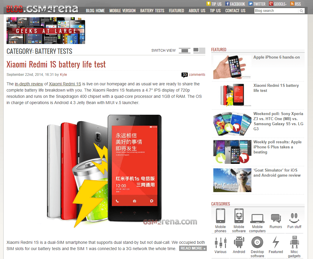 续航:GSMArena BATTERY TESTS