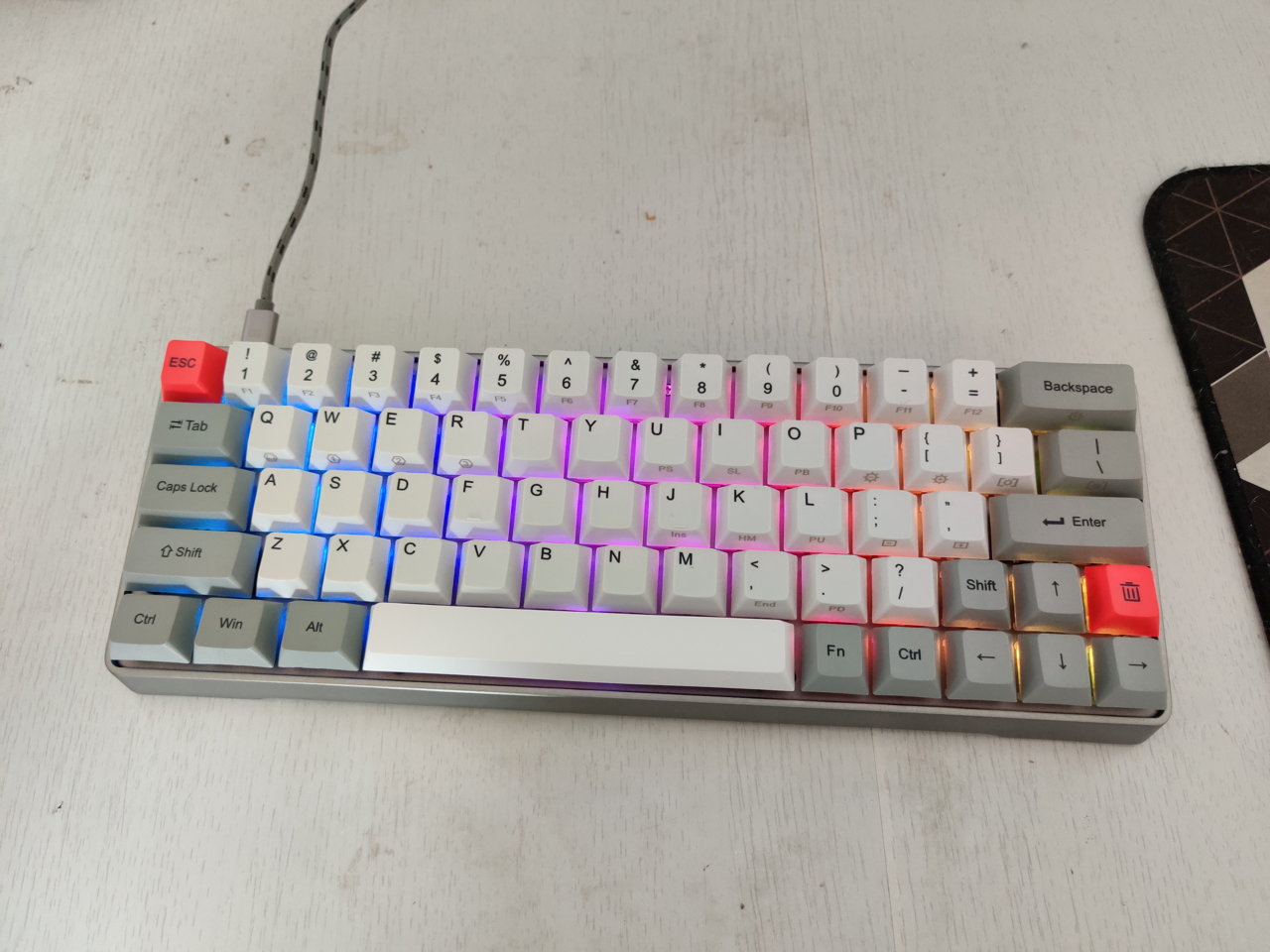 低调的 RGB 。手感这种主观的东西就不细评,这把是我用过的手感最轻脆的红轴,甚至有点茶轴的味道,个人挺喜欢的。