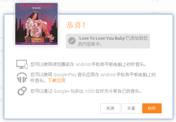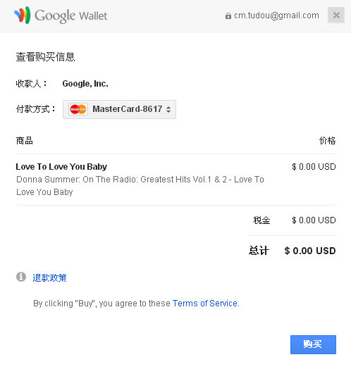 测试一下,随便在Google Play买一首免费的音乐(没添加信用卡是买不了音乐的)。