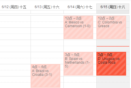 网上搜到两个Google 日历的世界杯赛程表,一个中文一个英文的。