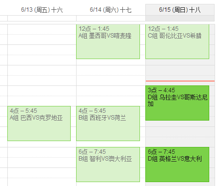 伪球迷看世界杯,赛程记不住,所以弄个日历提醒什么时候比赛。