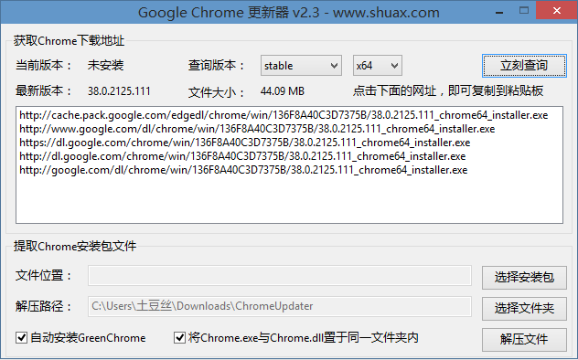 用此工具来找到Chrome各版本的离线安装包下载地址,然后用迅雷、IDM或者百度云离线等方法下载安装。Stable是稳定版,64位系统最好使用x64版本,有性能提升。