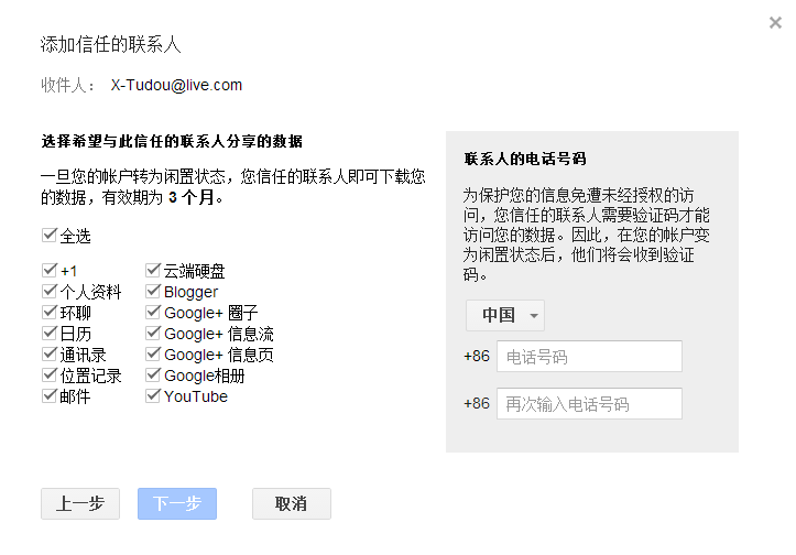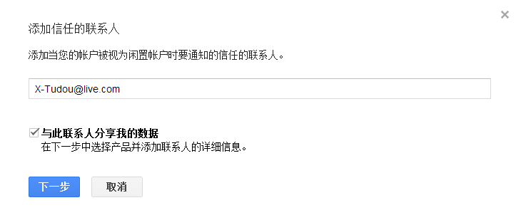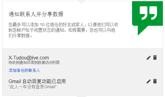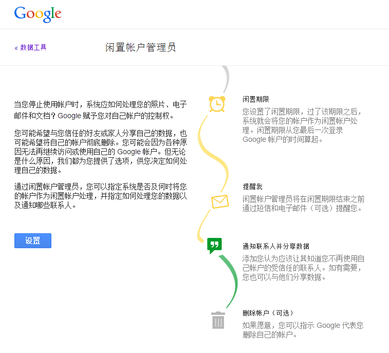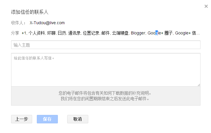 点进去,介绍,当你停止使用Google帐号时把Google账户的数据通过邮件发送给继承人。