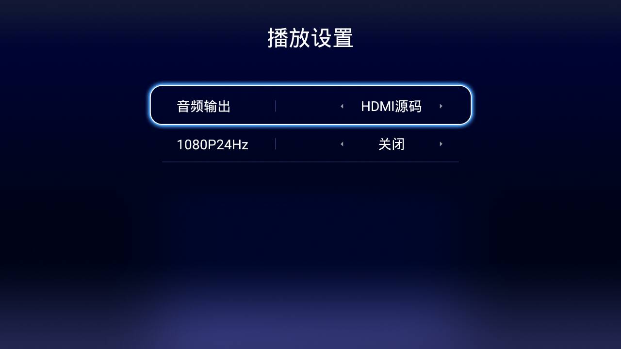 5.1 声道音响系统的需要设置 HDMI 音频源码输出,由功放机解码。