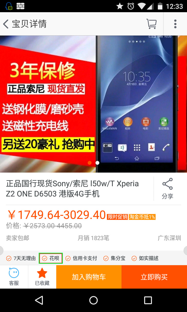 淘宝也部分支持花呗的,在Web页面需要拍下结账才能是否时候支持,但用移动客户端可以直接在商品页面看到花呗。