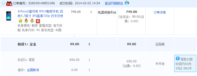 付定金99块,刚好今天截止预订。