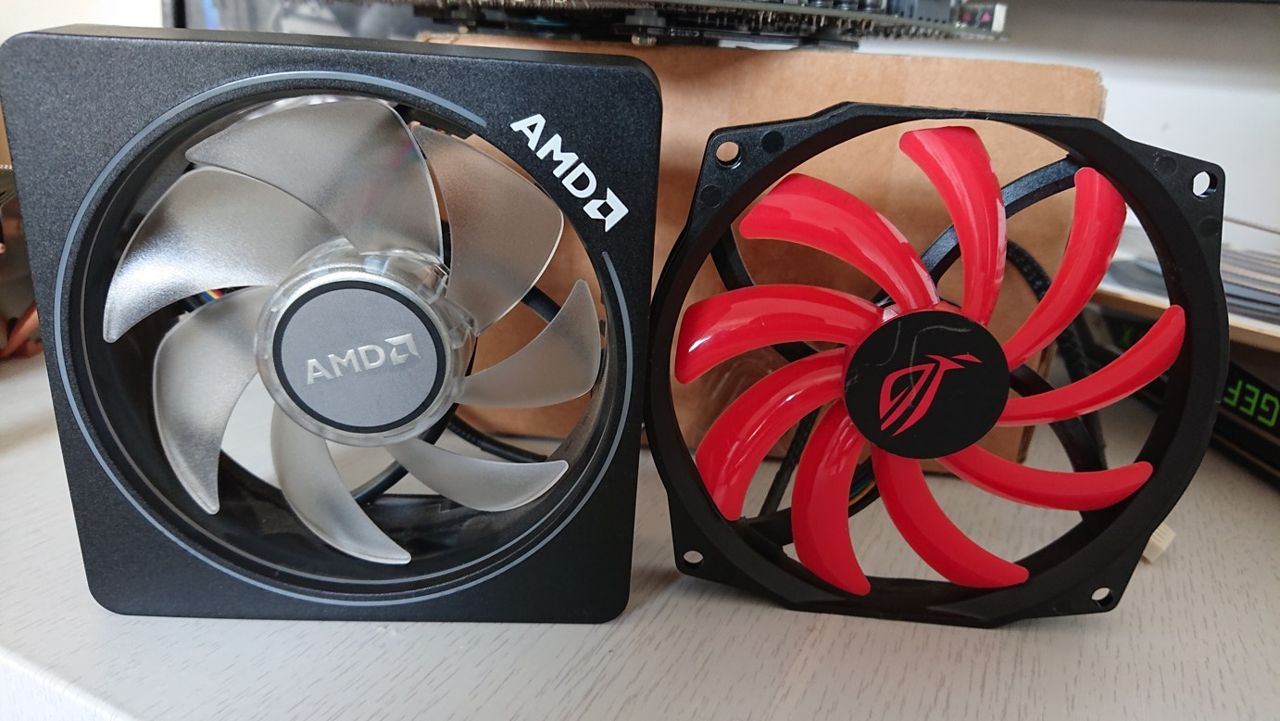 拆掉 APX-100 RH 的原装风扇和 AMD 幽灵散热器风扇对比,两个都是 10CM 的。