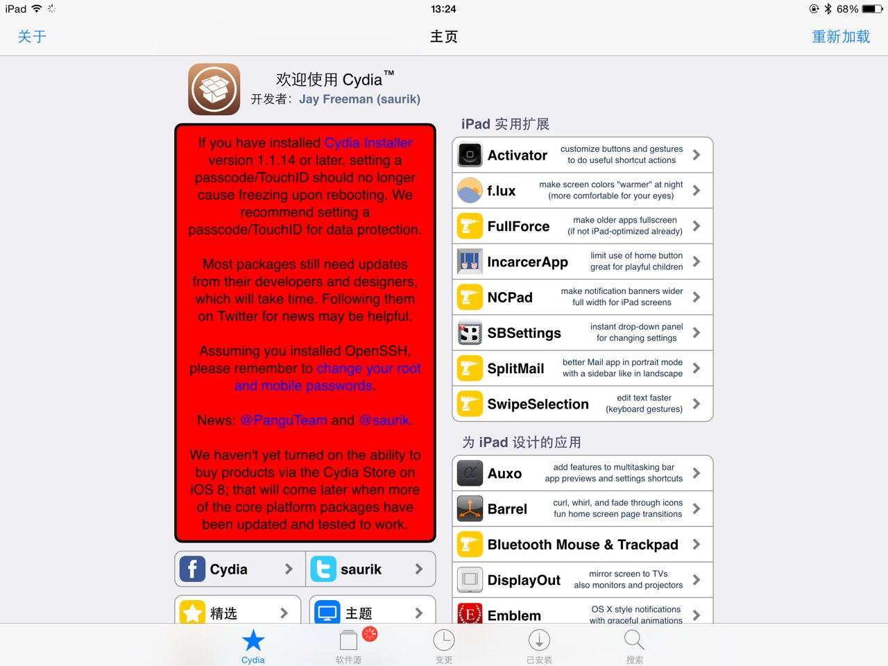 iOS8盘古越狱集成Cydia