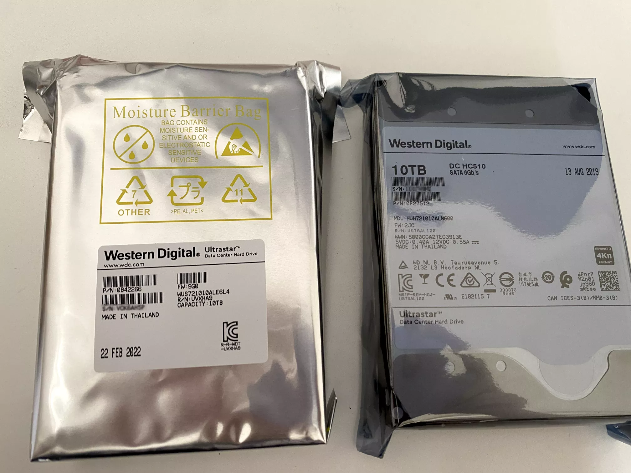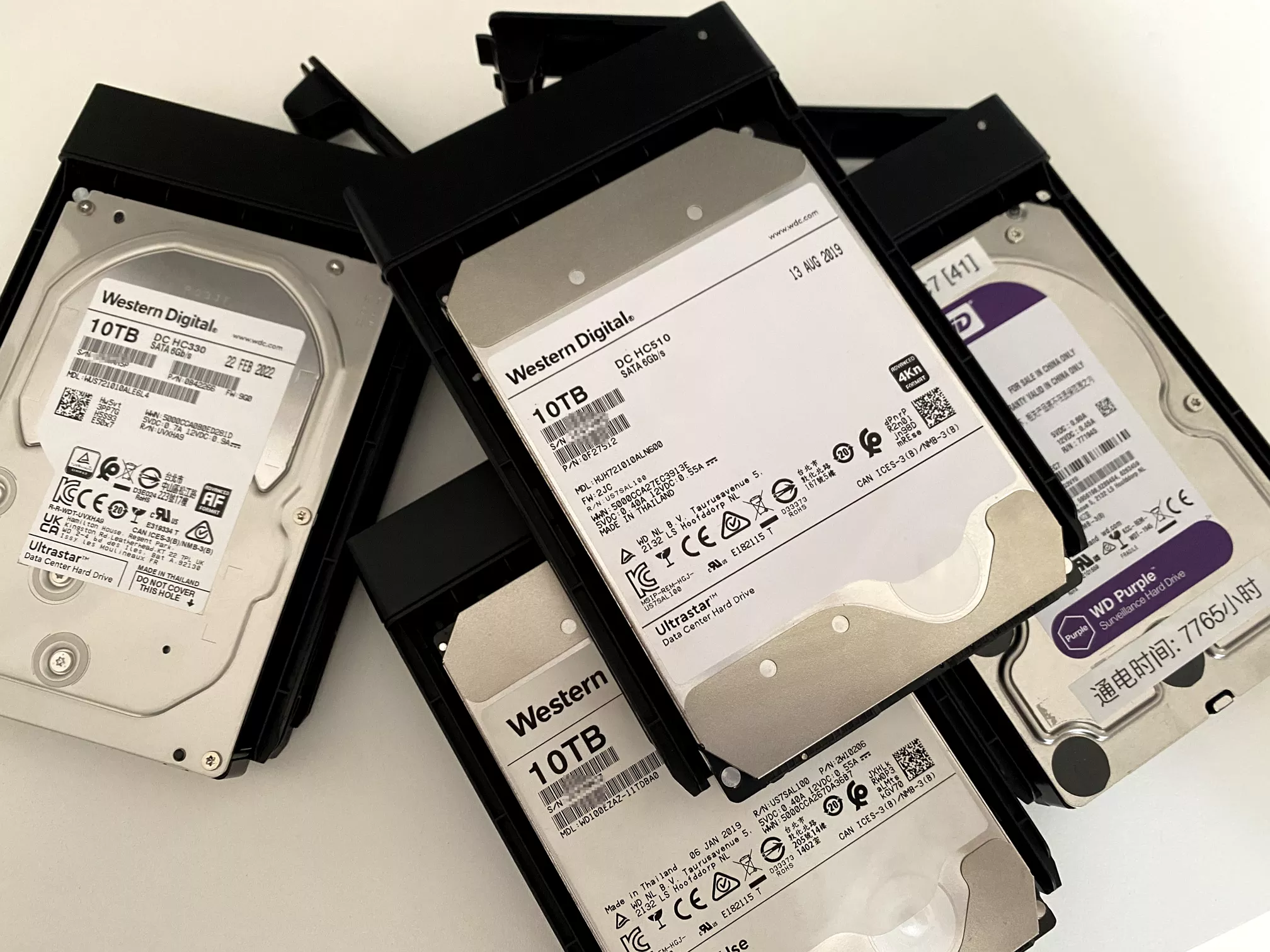 西数 HC510 ,10TB 氦气盘,服务器拆机,通电 3000 小时,淘宝北京某商家 550 元购入。