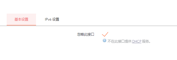 基本设置里给“忽略此接口”打勾,因为要用主路由提供 DHCP 服务。