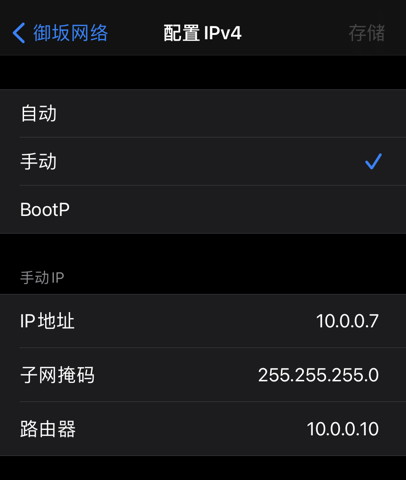因为 AX6 的固件不能给设备下发网关和 DNS ,在需要翻墙的设备上需要手动设置网关和 DNS 。如在 iOS 系统的 IP 设置里,路由器指的就是网关,填旁路由的 IP ,DNS 也填旁路由的 IP 。