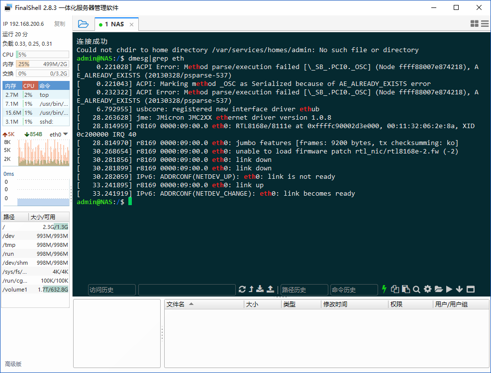 直接 SSH 登录 NAS ,输入 dmesg|grep eth 回车即可查询到真实的网卡 MAC 地址。