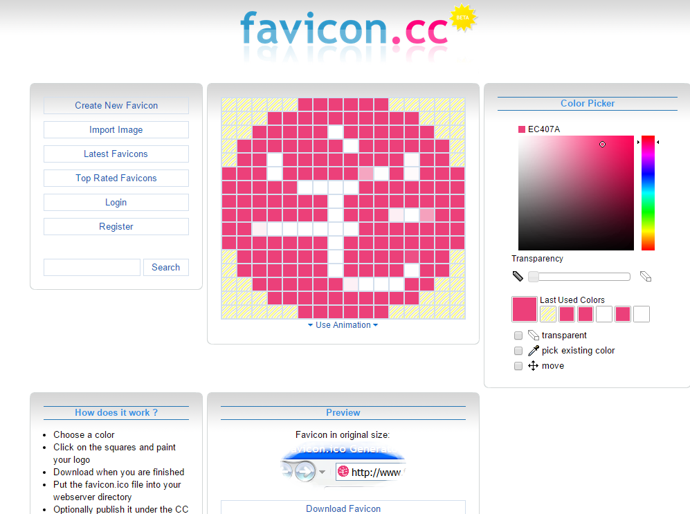 进入 favicon.cc 导入图片就会自动生成 Favicon ,可以小改一下让字体更锐利。