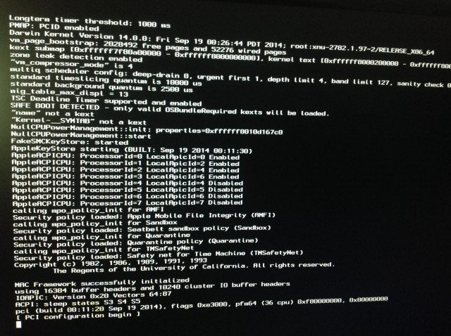 我试着做,搜到10.9.5的AppleACPIPlataform.kext,替换进去,结果让人激动,跳过了PCI错误。