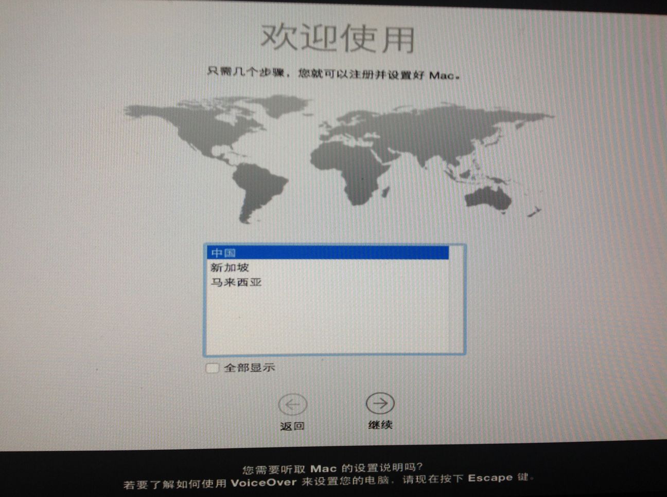 把安装分区Extra目录复制到OS X系统分区目录下,然后重启 -v -f 进入设置向导界面。