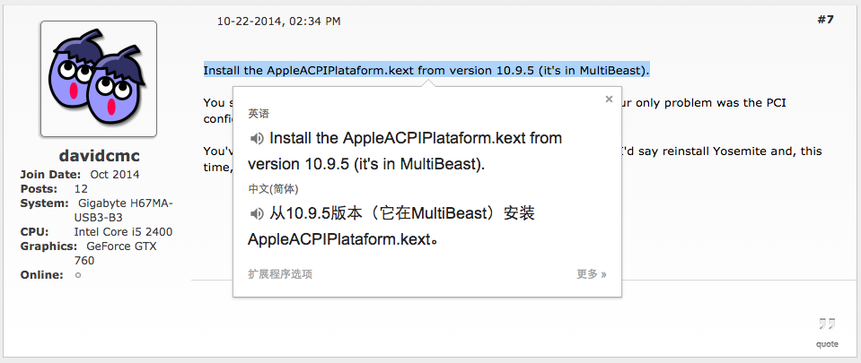 其中一条回复,把10.9.5的的AppleACPIPlataform.kext替换进去,应该是这个意思吧。