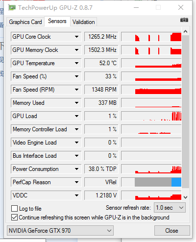 且慢!经过细心观察,我发现,这张 Boost 频率 1197 MHz 的 GTX 970 在游戏里面居然运行在 1265 MHz 的频率上。