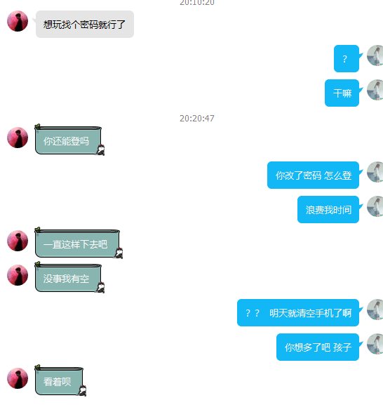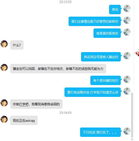 时间拖到了第二天,帐号密码已经申诉找回了,骗子都急死了。