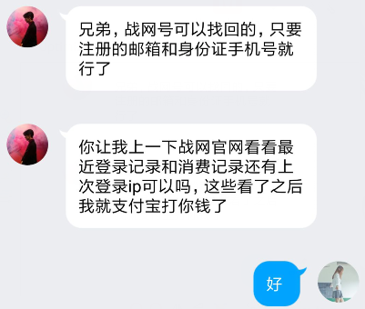 - 因为号被改了密码还等申诉,他趁这个时间开出高价要买帐号。并用另一个小号在贴吧发帖假装可以找回暴雪战网密码的黑客。(够假的啊)