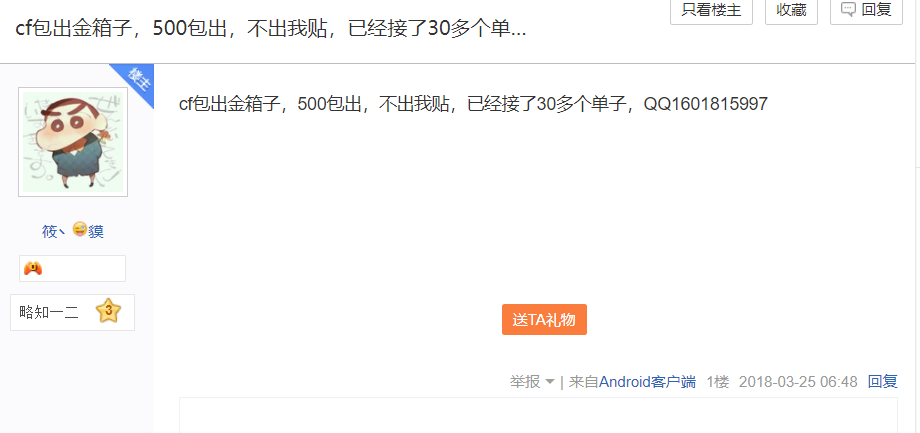 骗子在卖号贴下面回复自己的QQ,然后加QQ好友,表示要买号。