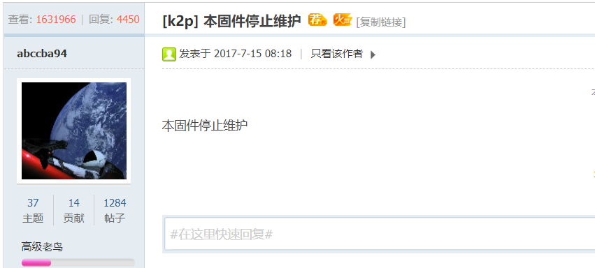 受影响的包括斐讯路由器官改固件开发者 abccba94 ,OpenWRT 固件开发者 Lean ,老毛子固件(Padavan)开发者荒野无灯 和 hanwckf 等大神。
