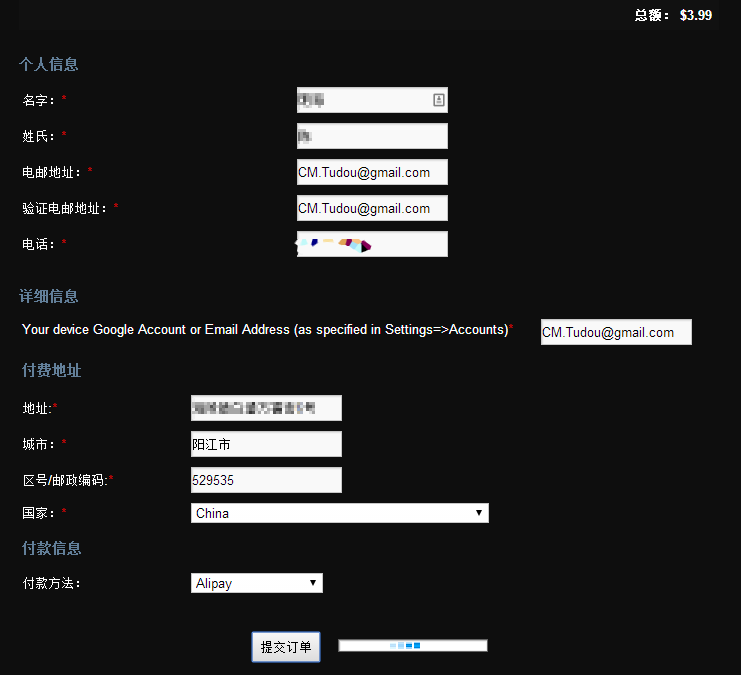 购买起来非常简单,进入 PowerAMP-Buy 页面,再点 Buy Now, Directly 就可以填写资料了。