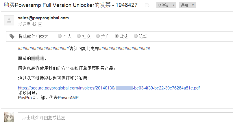 发邮件PowerAMP问关于几台Android设备可以用同一个授权,只要这几台设备用购买了PowerAMP的Google帐号登录就可以了。