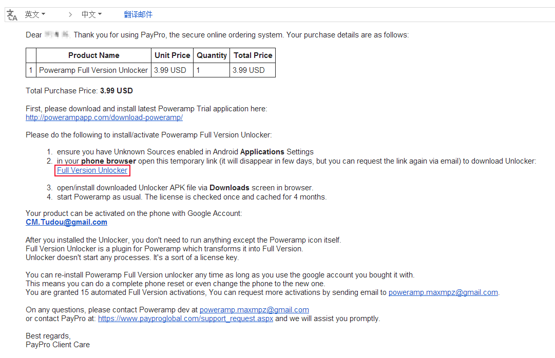 支付完成后收到两封邮件,一封是下载解锁器的。