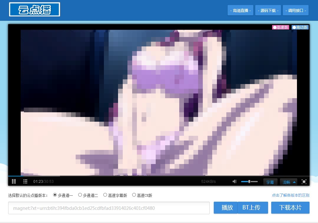 作者现在提供了一个网站,把磁力链接复制进去就可以云播,不过速度不太理想,还是下载吧。