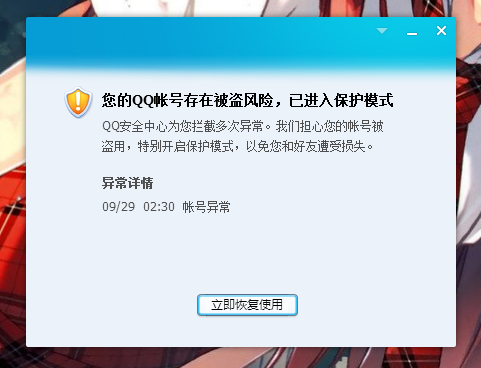 这个星期起,我的 QQ 每天凌晨在电脑上挂机的时候都会因为帐号异常而进入保护模式。