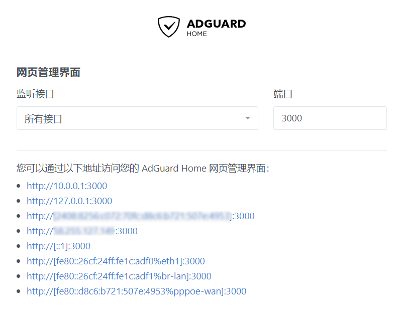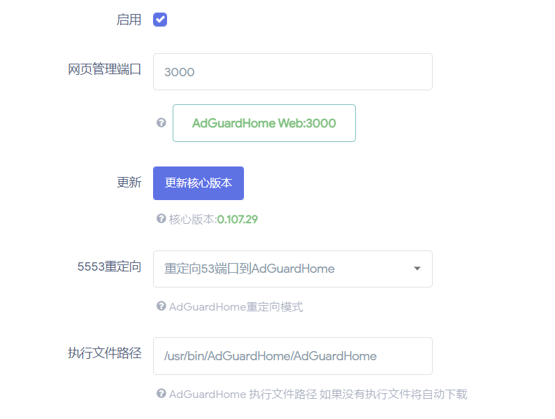 在 AdGuard Home 的界面点击更新核心版本,然后进入配置界面。