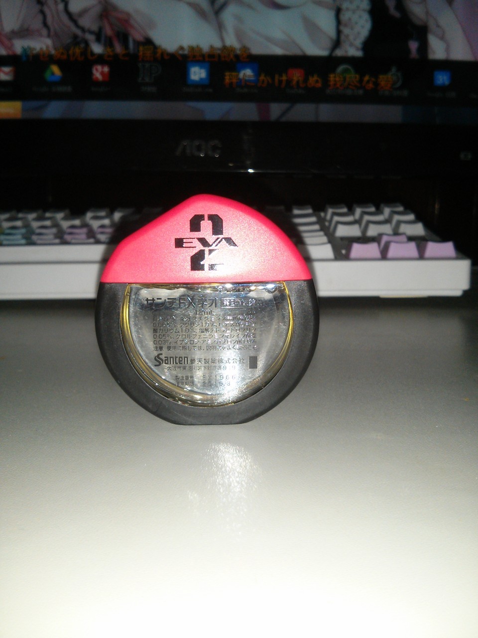 ACG EVA眼药水到了 朋友说效果很好,可以缓解眼镜疲劳。 因为工作对着电脑,回到家还是对着电脑,所以买来试试。 其实最重要的原因是因为包装。 本来还想买其他的,发现店家只剩明日香的了。 瓶子挺好看的,很好,据说能用一个月。 滴一滴下去,卧槽,超凉快,第一次滴眼泪都要下来了。 滴了两次,然后越来越困,难道是因为流泪的原因 ?