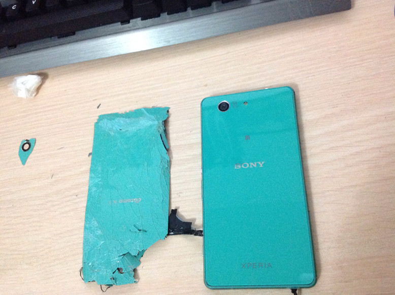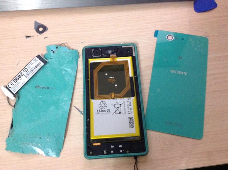 大概半年前,我的 Z3C 摔了几次,然后后盖就碎成这样了。