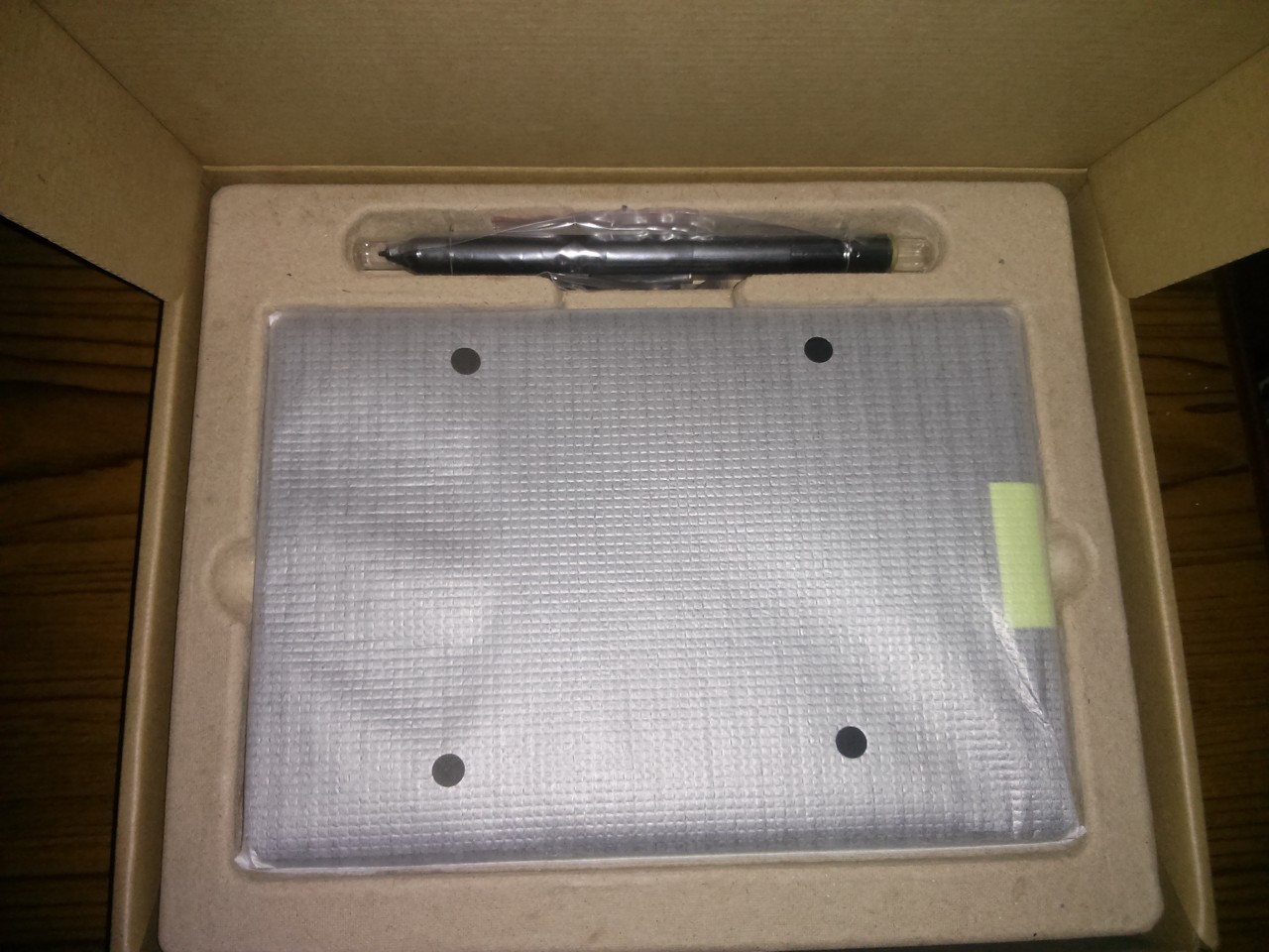 东西少的可怜,板子本体、压感笔、数据线、说明书和驱动光盘。