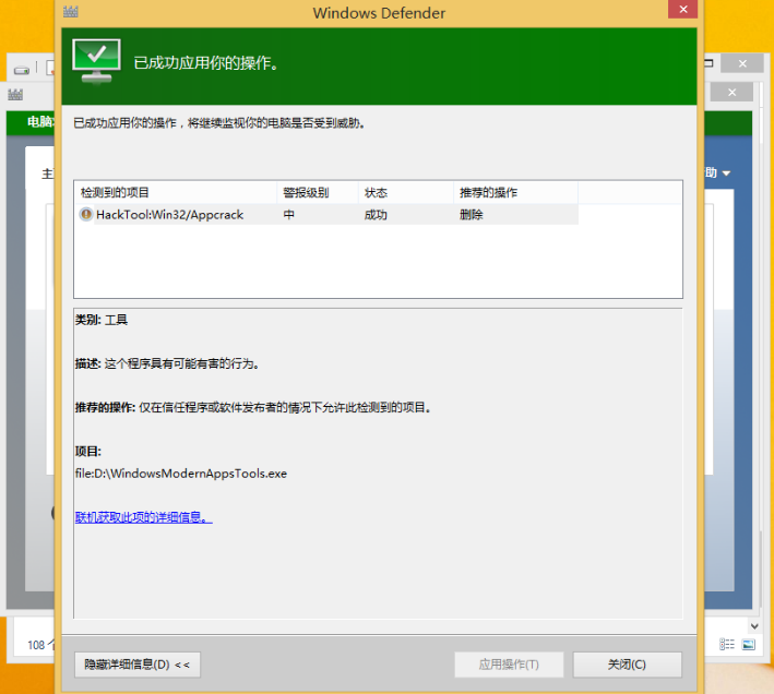 PS:被隔离的那软件是破解Metro应用的!和Windows Loader下场一样~