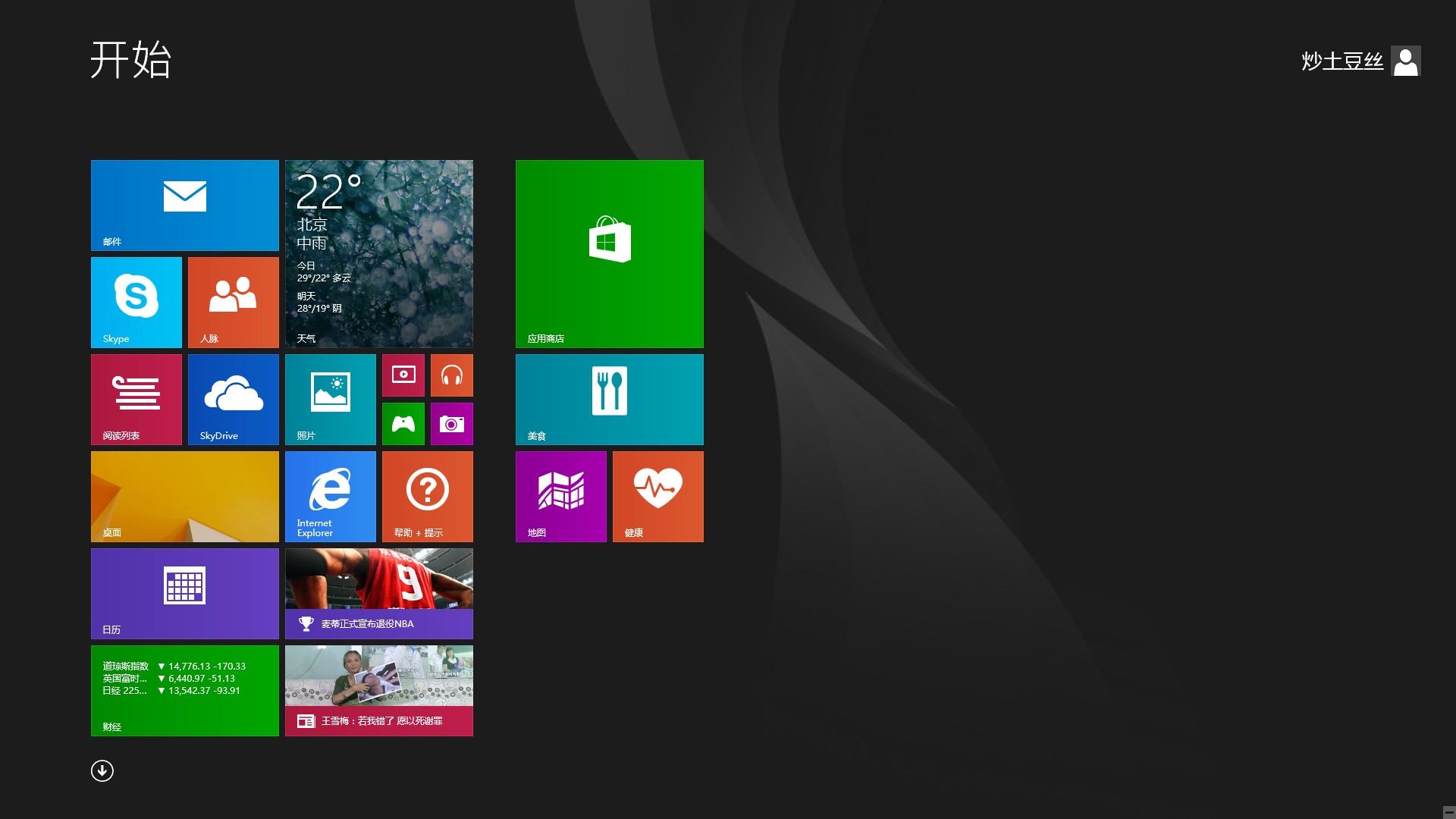 然后终于见到开始菜单其实我是装了显卡驱动才截的图刚进系统分辨率很奇葩WIN8进系统直接1080P!~