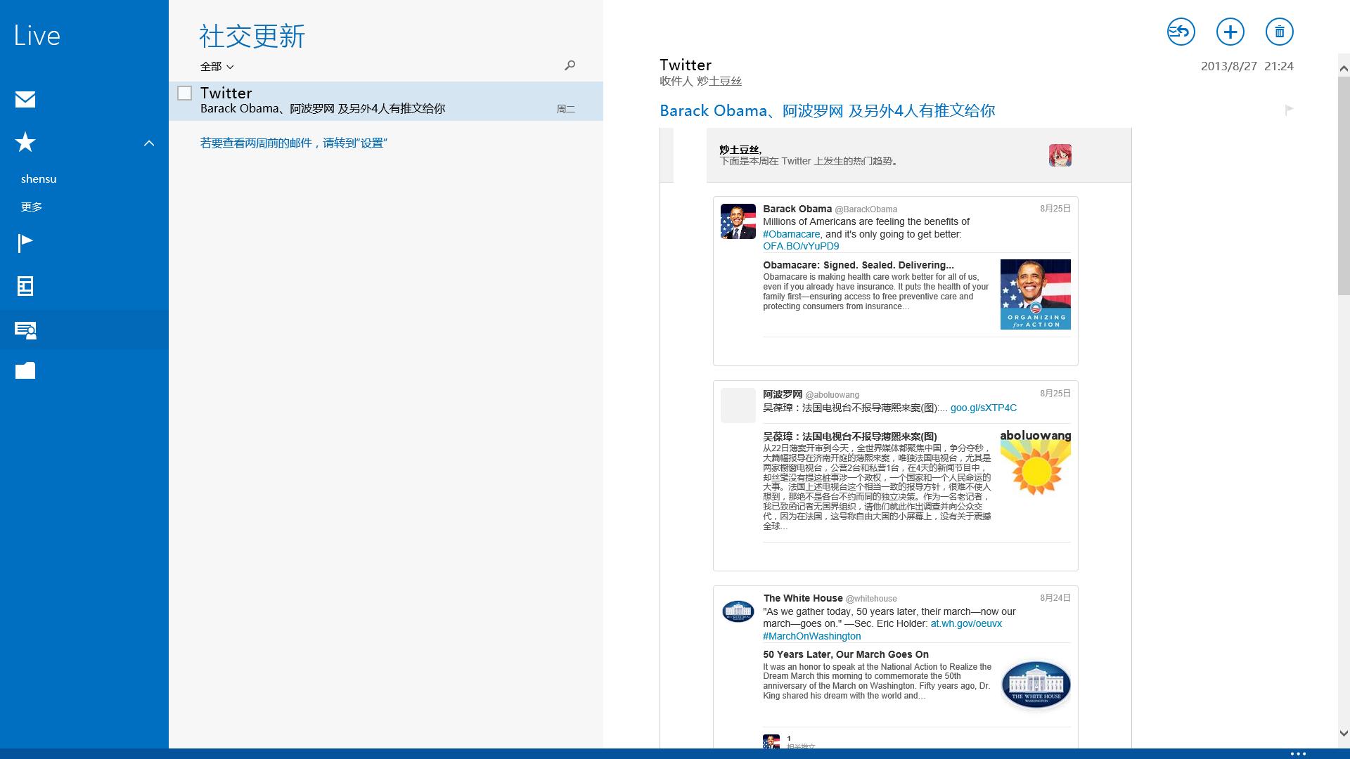 首先个人最喜欢的邮件客户端主要是喜欢那个推送!磁贴变成蓝色了