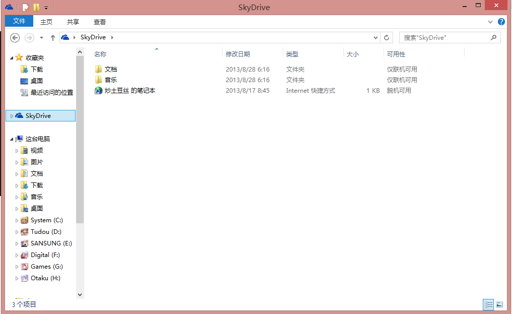 事实上8.1的资源管理器里已经集成了SKYDRIVE!~