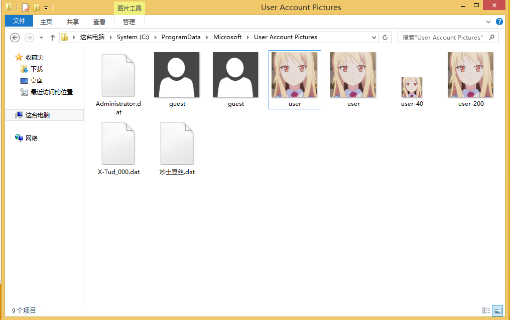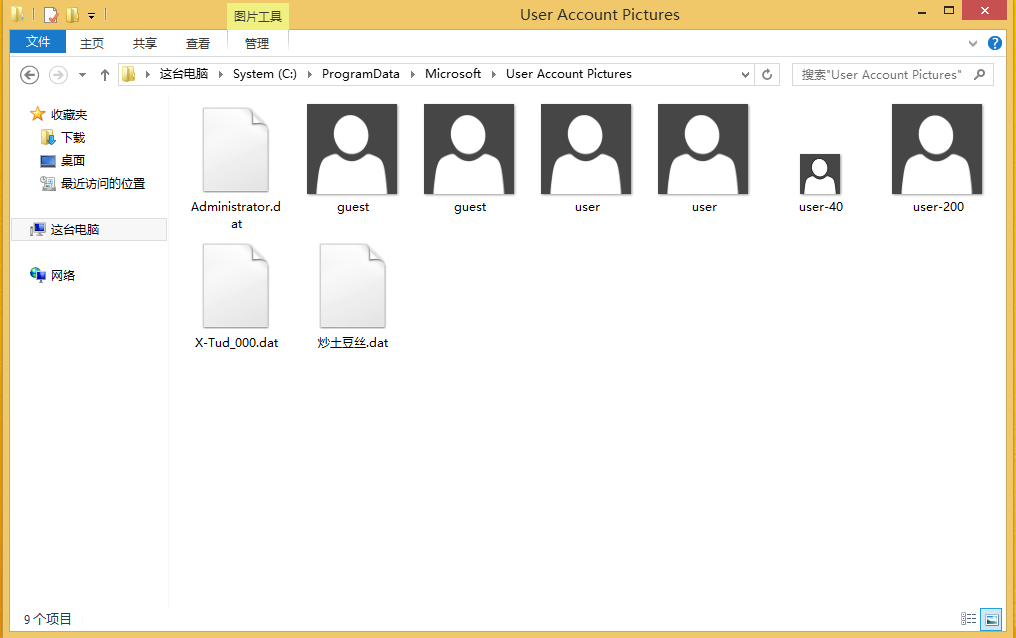 打开 C:\ProgramData\Microsoft\User Account Pictures