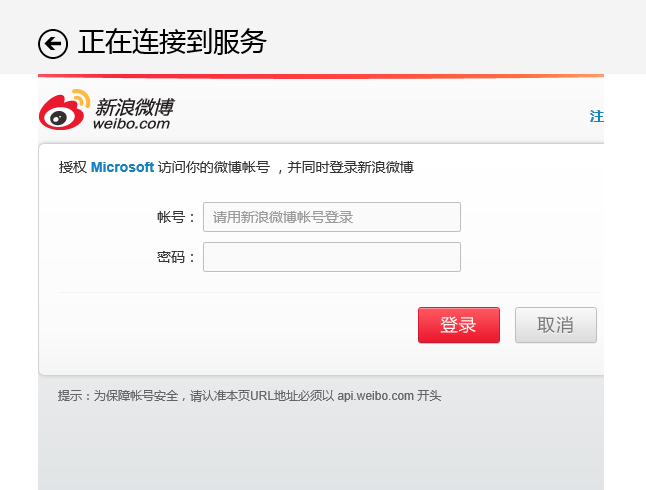 想和微博关联下结果发现账号密码都无法输入坑爹!~