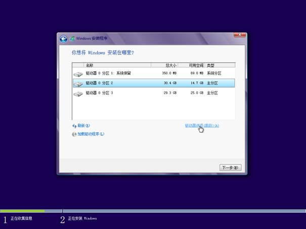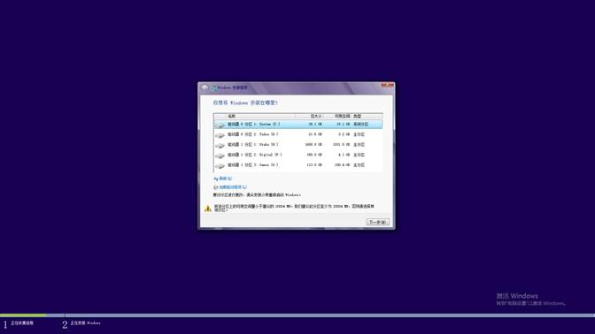 然后直接跳到选择分区那里,因为上边写了,所以不写了。