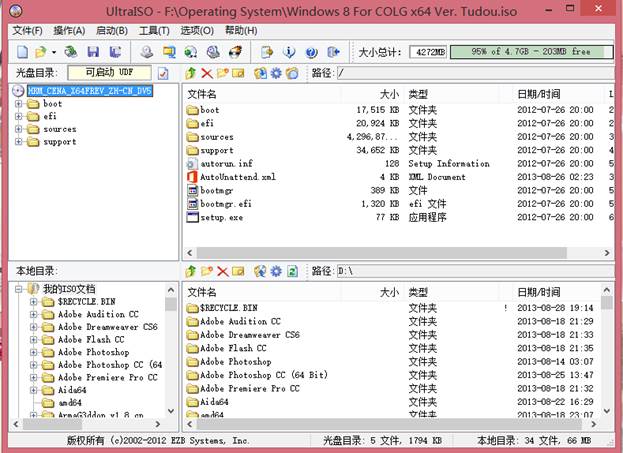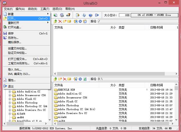 打开UltraISO,用它打开下载并解压好的ISO文件。